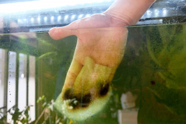 水は濁り、ガラスはコケだらけになり、